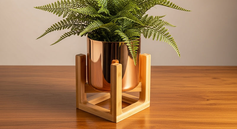 Luxurious Gold Ceramic Planter with Elegant Bamboo Stand